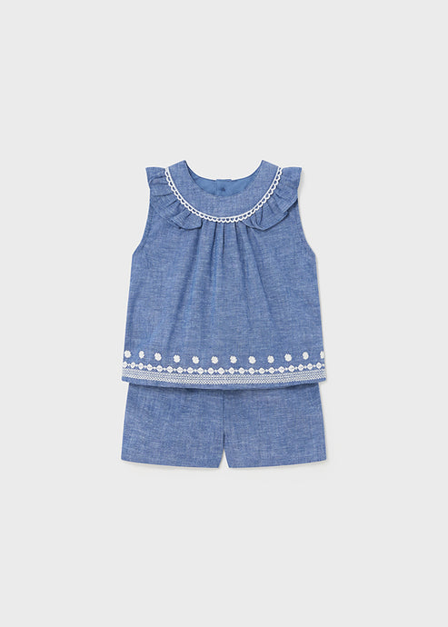 Conjunto short lino bordado blue